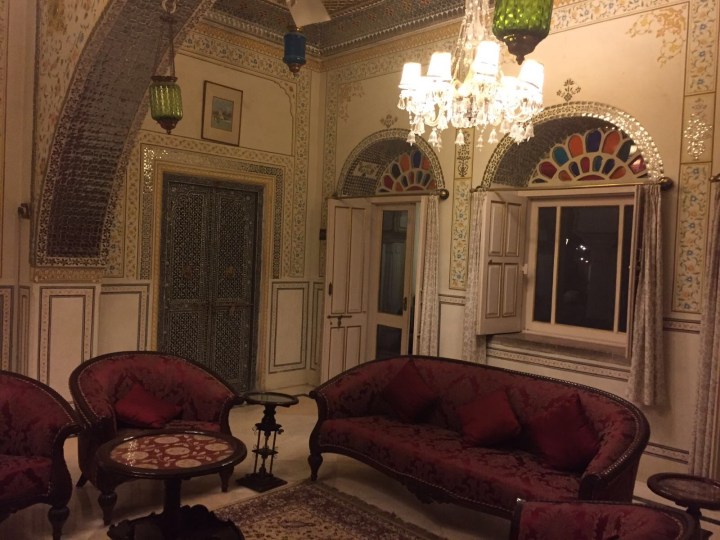 We booked into our Haveli which is a historic private mansion. These days they have been made into hotels. It was beautiful. An oasis inside when only steps away was chaos. We were taken up to our room which was decorated with hand carved wood furniture and painted with Indian patterns. We chose this a haveli because it looked so traditionally Indian.
